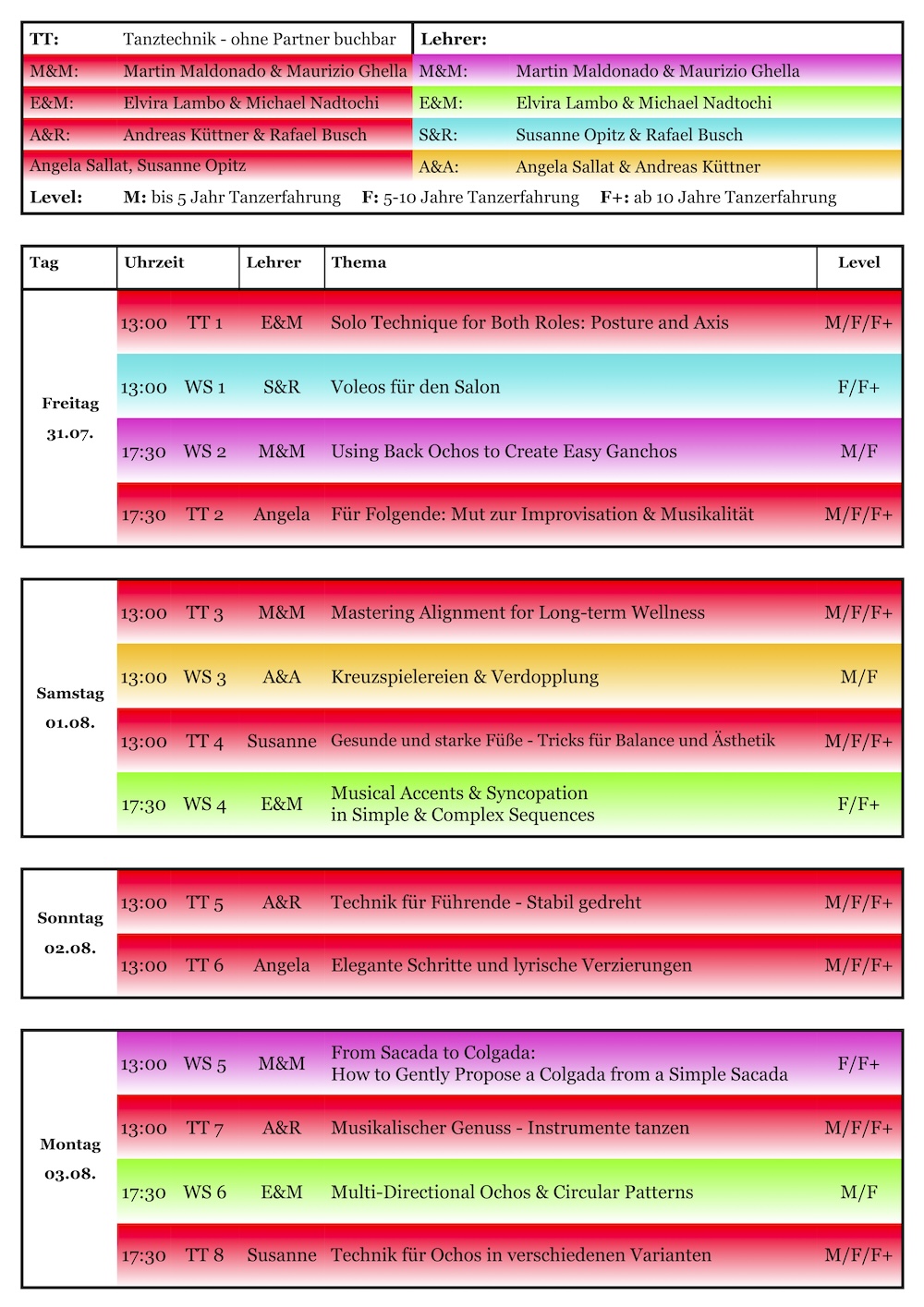 Bitte beachtet bei der Auswahl der Themen unbedingt eurer Tanzlevel und eure Tanzerfahrung,